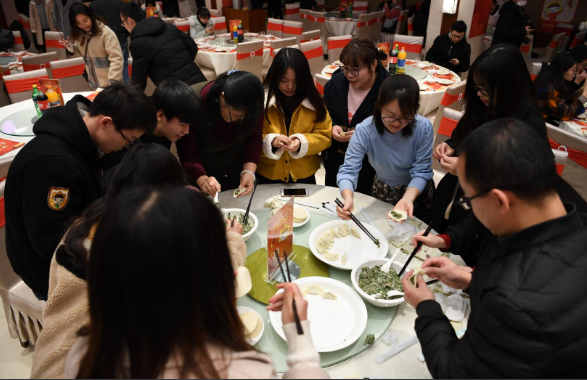 为了让留校同学过上一个温暖吉祥的春节,学校开展了“冬季送温暖”系列活动,迎新联欢会上新增了师生“包饺子迎新春”的温馨环节,老师手把手地教同学们拌馅儿、包捏,欢声笑语,年味儿十足。“从来没和那么多人一块儿包饺子,真是太开心了!”纺织学院李慧慧如是说。机械学院余石龙同学兴奋地说,“作为一个工科男生,从来没有觉得自己能够包饺子,在老师的指导下,竟然成功了!谢谢学校,这个寒假过得特别温馨。”