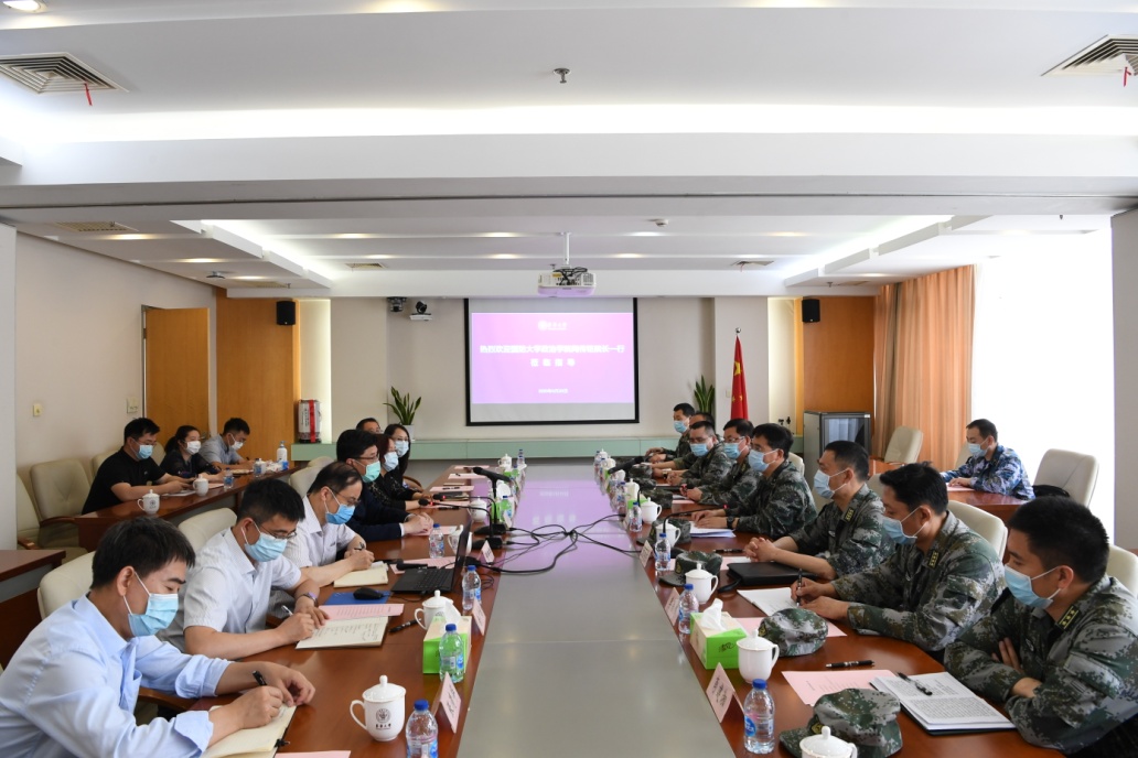 5月20日上午,国防大学政治学院院长陶传铭一行来校访问调研,党委书记刘承功、党委副书记刘淑慧、副校长陈南梁,国防大学政治学院副政治委员兼纪委书记张玉洲以及两校相关部门和院系负责人等出席座谈交流会。