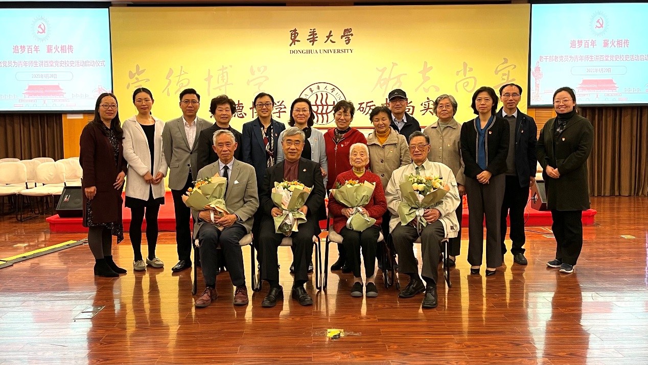 4月20日,我校“追梦百年 薪火相传——老干部老党员为青年师生讲百堂党史校史活动”启动仪式在延安路校区举行。党委副书记崔运花、副校长李炜、校关工委副主任浦解明、离休老干部刘征出席启动仪式。学校老领导、老干部、老党员代表,二级单位党组织正、副书记代表,专职党务干部、党建辅导员,青年教师、学生代表,党委组织部、关工委、离退休部门相关同志等100余人参加。启动仪式由党委组织部长林嵘主持。