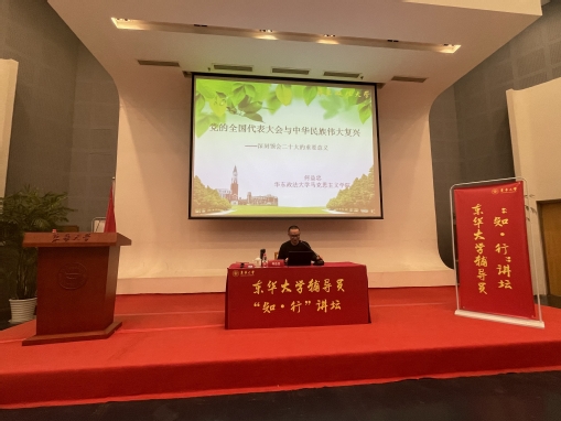 首场讲座邀请了上海市委讲师团党史学习教育专家宣讲团成员、华东政法大学马克思主义学院博士生导师何益忠教授作《党的全国代表大会与中华民族伟大复兴——深刻领会二十大的重要意义》为主题的专题辅导报告。他在报告中重点阐释了党的二十大的重大意义,聚焦党的全国代表大会、党的二十大召开背景、党的二十大精神有关内容,讲解了过去五年工作和新时代十年伟大变革,围绕党在新时代新征程的使命任务进行深入阐释,解读了全面建设社会主义现代化国家的目标任务和以自我革命引领社会革命的重要内容。报告深入浅出,用摆事实、讲道理的方式帮助学工团队深化对党的二十大精神的学习与理解。