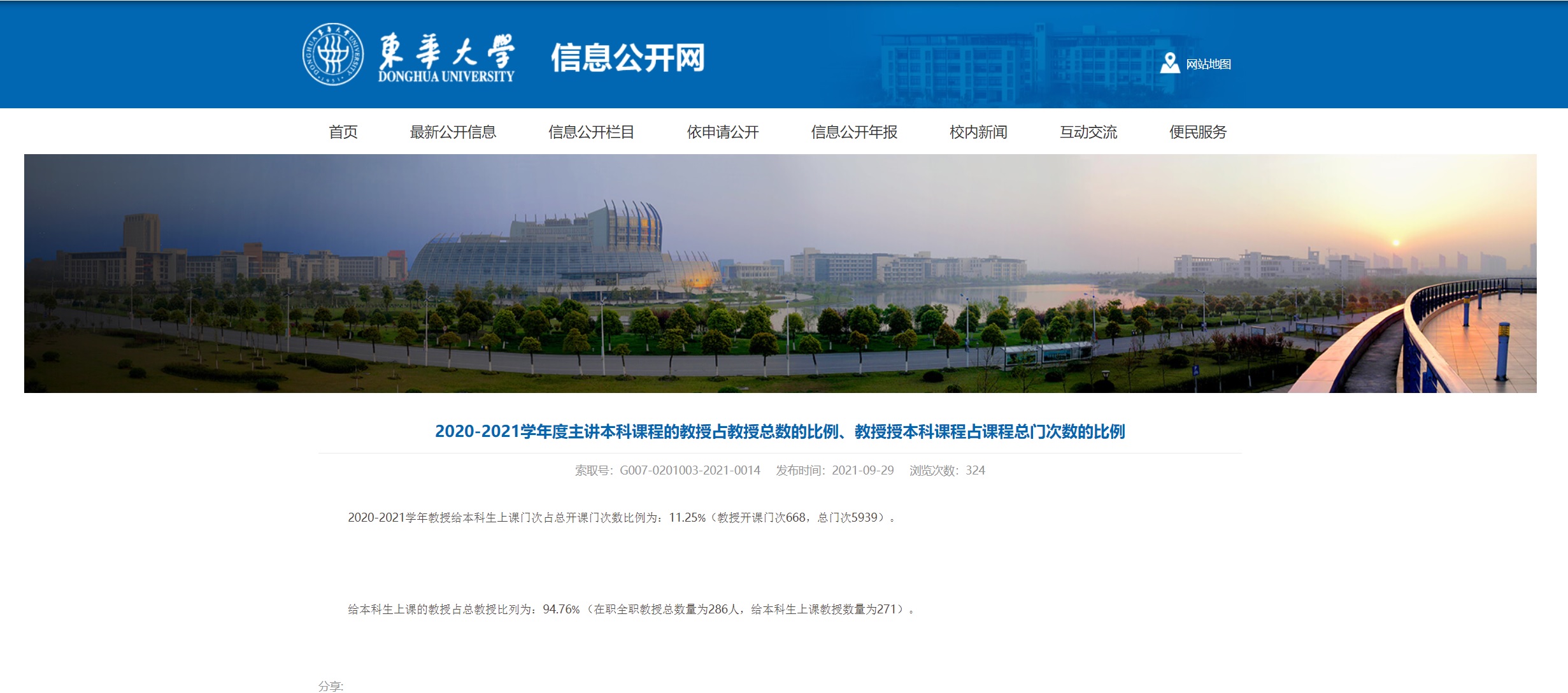 2020-2021学年教授给本科生上课门次占总开课门次数比例为:11.25%(教授开课门次668,总门次5939)。给本科生上课的教授占总教授比列为:94.76% (在职全职教授总数量为286人,给本科生上课教授数量为271)。